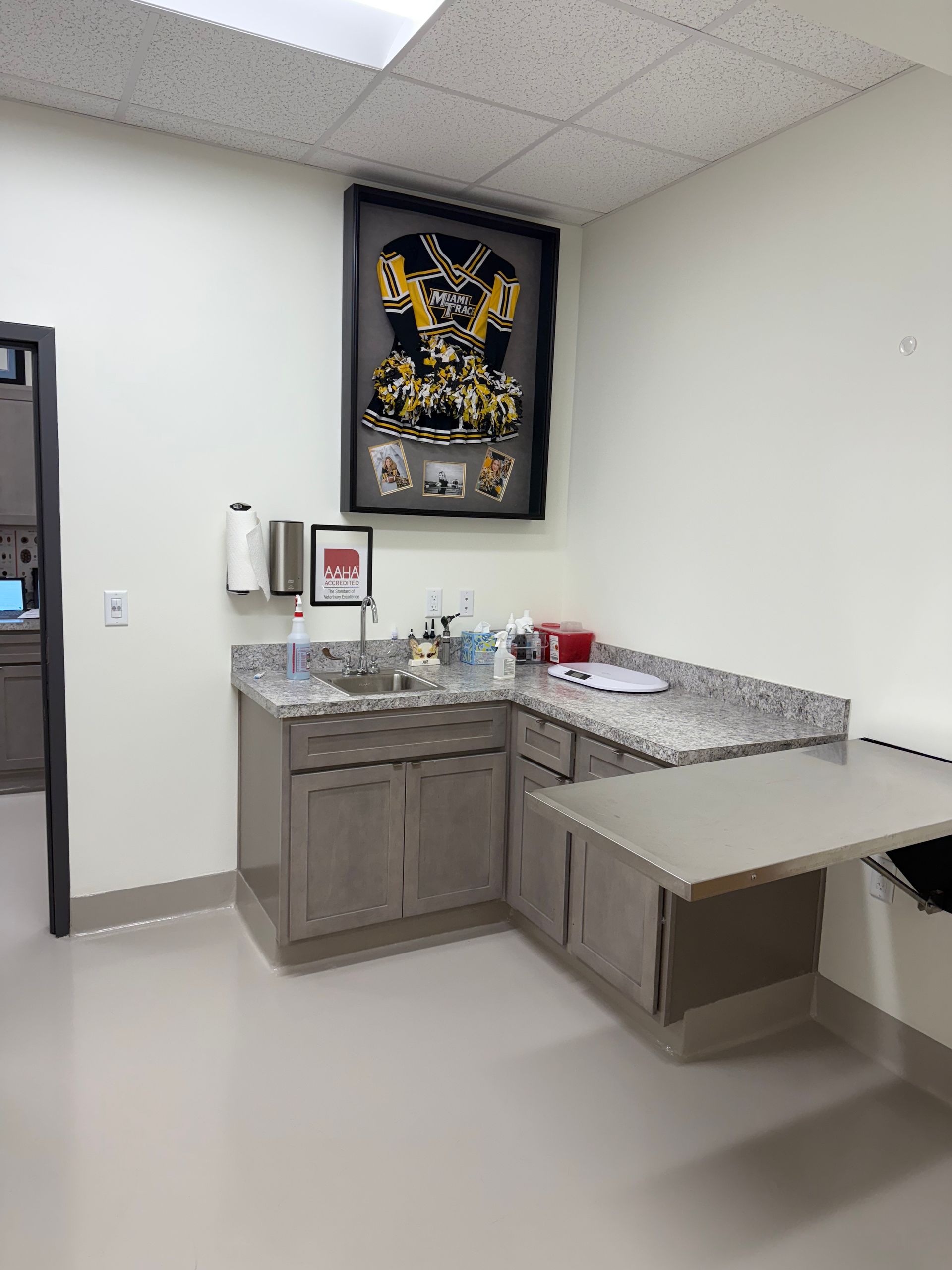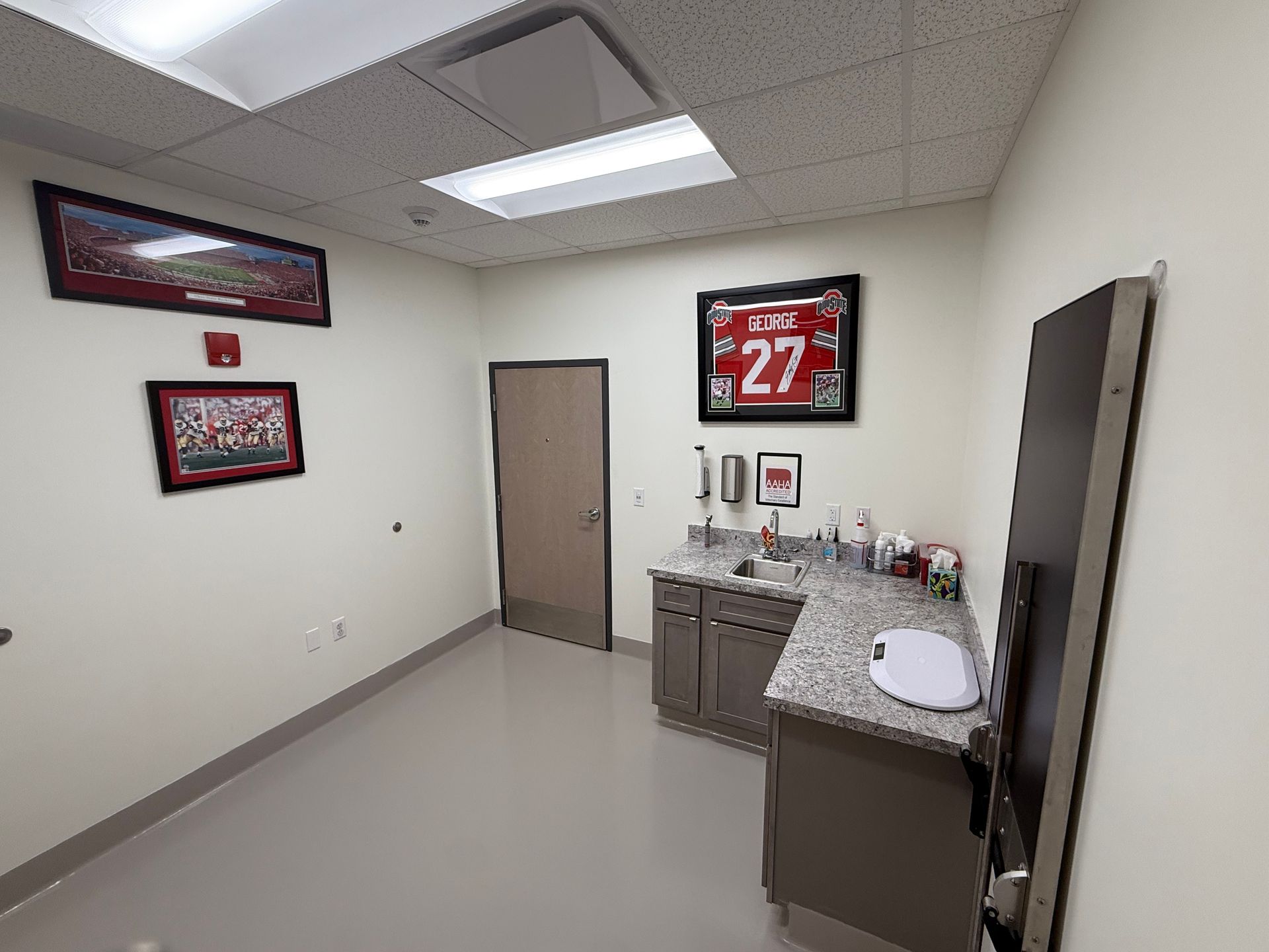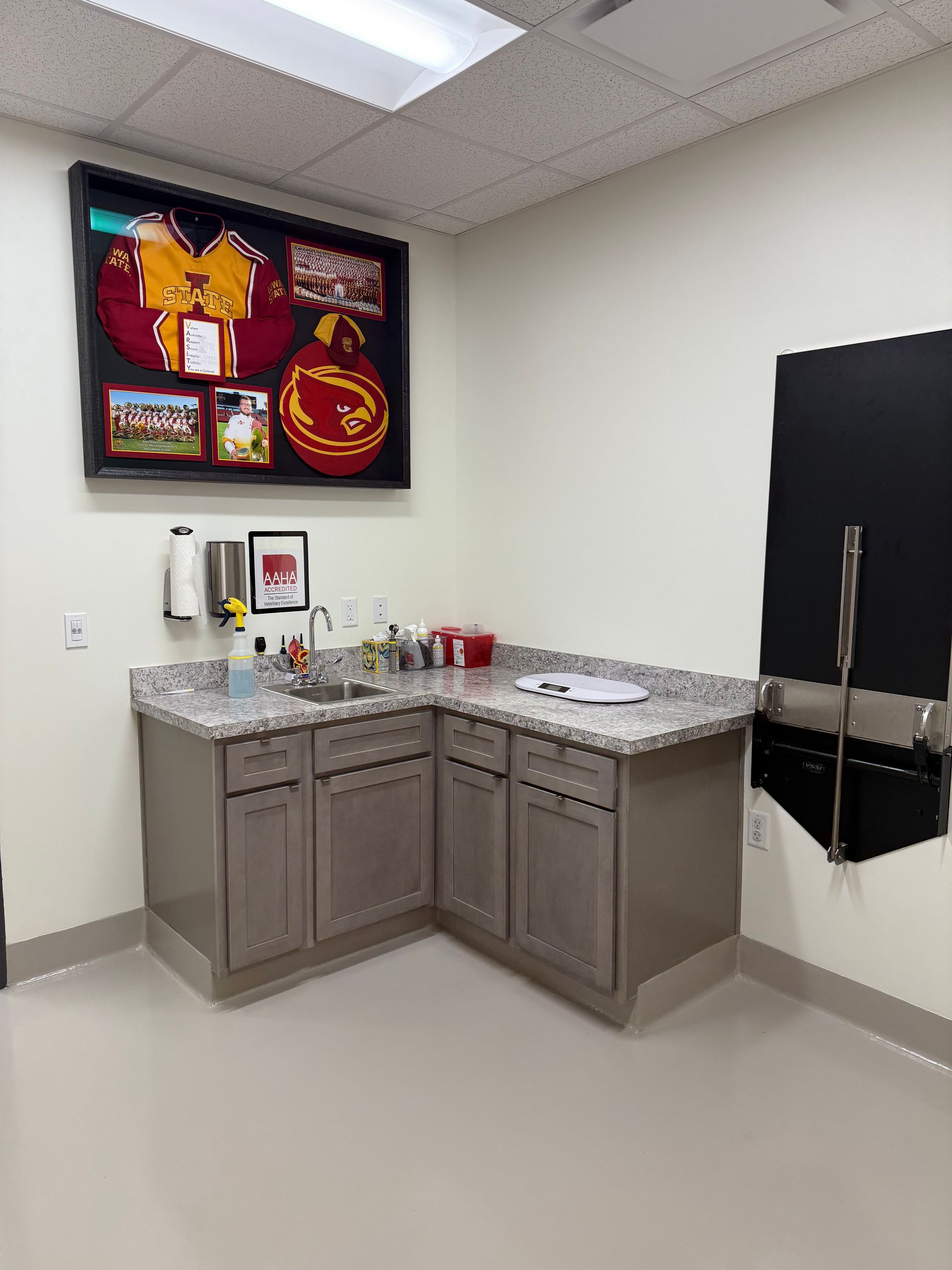 Our new exam rooms pay homage to where our veterinarians went to vet school
